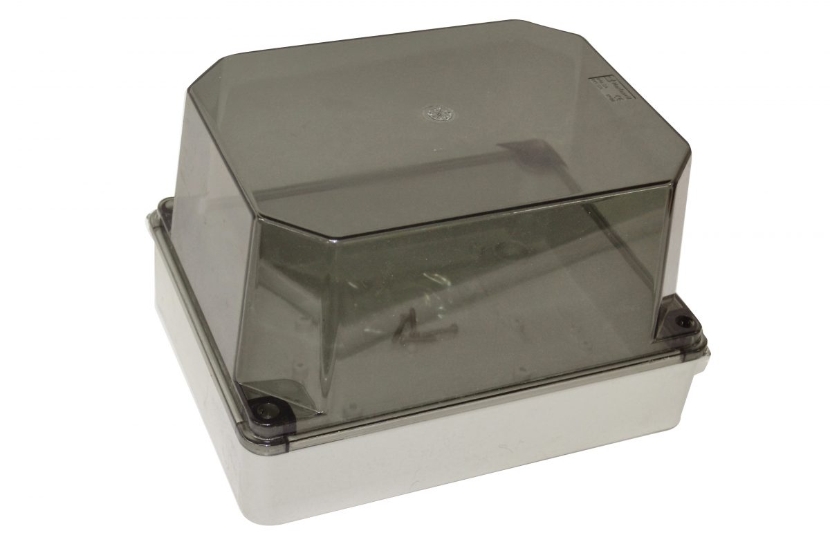 IP66 Thermoplastic enclosure 243mm high x 190mm wide x155mm deep, Clear Lid and Stainless Steel Lid Screws