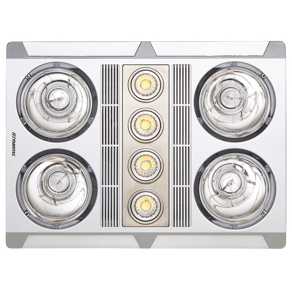 Profile Bathroom Heater (4 x 275W) and Exhaust Fan (460m?/h) with LED Light (4 x 6W GU10) 435 x 275mm cutout